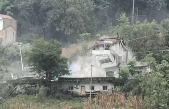 万源暴雨村民提前撤离家中 数小时后房屋垮塌