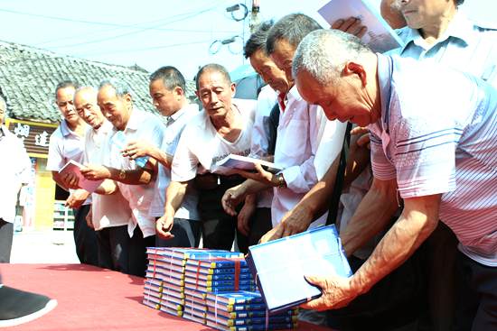 | | 老人们为群众分发书籍(曾明辉供图) |