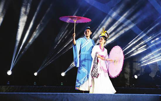 6月24日晚,蓬安县凤凰生态公园内灯火辉煌,人潮涌动。由蓬安县委、县政府主办的“大美公园·城市之夜”文化惠民文艺演出月第四场演出在这里火热上演。 当晚,记者在演出现场看到,蓬安民俗风情剧《蜀红》之“洗衣舞”拉开了整台演出的帷幕。伴着“叮咚”的流水声,一群美丽的姑娘背着背篓,在江边洗衣。变幻的灯光、四溅的水花、优美的音乐,令整个舞台美轮美奂。 随后,大型史诗性歌舞剧《相如长歌》将演出推向高潮。跌宕起伏的剧情、唯美的爱情故事,将现场观众带进一个如诗如画的境界。演出中,歌舞《月亮岛》、川北灯戏《牛哞哞上门记》、话剧小品《幸福村里的浪漫事》等精彩节目也一一登场,引得现场掌声不断。 “能在家门口看到这么高标准的演出,我很自豪。”很多市民表示,希望以后能多举办这样的文艺活动。 据了解,本次“大美公园·城市之夜”文化惠民文艺演出月活动于本月16日启动,将持续1个多月。演出内容以《相如长歌》《蜀红》的精彩片段为主,穿插富有地方特色的灯戏、歌舞剧、曲艺等,旨在丰富群众的精神文化生活,达到以“文”惠民的目的。(南充日报 刘永红 成晓薇) 原标题:看《蜀红》飘舞 听《相如长歌》