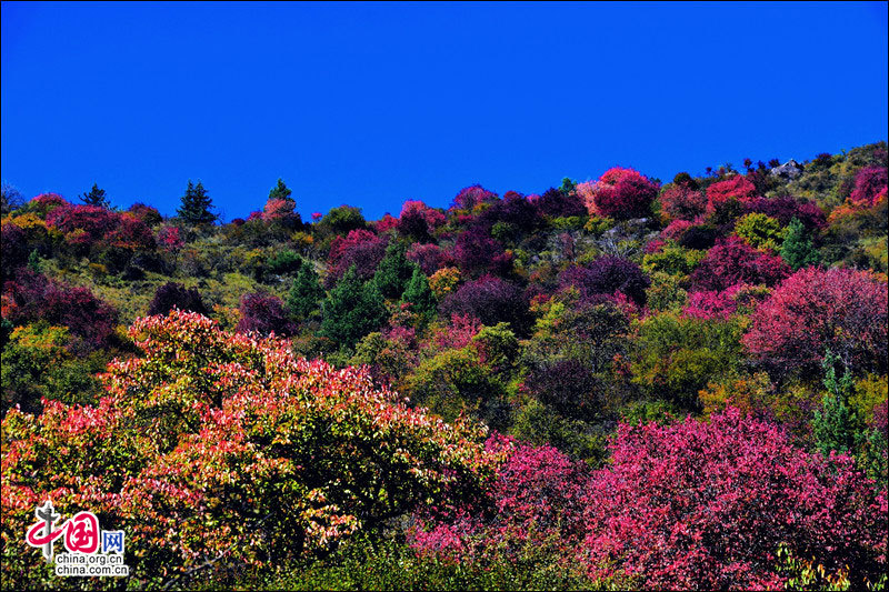 秋天的藏寨进入一年最美的季节,造型独特、别致的藏民居层层向上攀缘,一直伸延到神山脚下,整个山寨依着起伏的山势迤逦连绵,在相对高差近千米的山坡上,一幢幢藏式楼房洒落在彩林之中,与山谷、溪流、雪峰一起,极富层次,构成一幅恬静如诗的优美画卷。(唐莉 摄影 米宏伟)