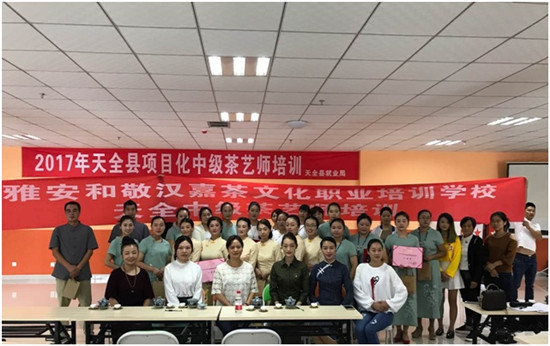 2017年天全县首届项目化中级茶艺师结业合影 四川新闻网雅安9月7日讯9月5日,为期一个月的天全县首届项目化中级茶艺师班在天全县团委青少年宫正式举行了结业考核与汇报,圆满的完成了此次扎根地方、服务茶叶产业的的茶艺教学培训。 此次中级茶艺师的鉴定结业考试分为6组,共计50余人参与鉴定。在平时的教学中和敬汉嘉学校秉承“和乐待人、持茶敬道”的教学理念,立足天全县大力发展茶叶产业,培养农民工及城镇失业劳动者再就业的需求。结业鉴定时,学员们不仅表现卓越、茶艺技能掌握良好,更将自己对茶文化的感悟凝聚在了一招一式、一丝不苟的茶艺演绎中。相信在今后天全会刮起一股习茶、饮茶、尊茶、爱茶的好风潮。(文/图由雅安市人社局提供) |