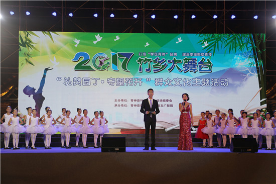 竹乡大舞台群众文化活动隆重开幕 青神县第33个教师节颁奖典礼 四川新闻网眉山9月8日讯(宋美志 高扬 文/图)“老师啊老师,你像我兄长;老师啊老师,像老朋友一样;老师啊老师,是我学习的榜样;你给我的一切,我永远不会忘... ...”一曲《老师》拉开了竹乡大舞台“礼赞园丁·守望花开”群众文化主题活动的帷幕。9月6日晚,在青神县中岩公园群众文化广场举办了一场别开生面的教师节庆祝活动,群众文化活动组织“竹乡大舞台”首次助演教师节庆祝活动。 音乐情景剧《守望花开》 “竹乡大舞台”是一个政府搭台、群众参与、社会支持的主题群众文化活动,参演节目和演员来自青神县各民间文艺团体,服务对象为全县城乡群众,丰富群众文化生活。“竹乡大舞台”自今年3月开办以来,深受老百姓喜爱,目前已成功举办了3期。本期结合教师节庆祝活动,以“礼赞园丁·守望花开”为主题,将一台精彩纷呈的文娱节目呈现在全县群众面前。“我每期都看,特别是这次的活动以教师节庆祝为主题,让我们既欣赏了精彩的节目,又从节目中看到老师的艰辛和全社会尊师重教的氛围。”带着女儿来看演出的王女士感慨。 小品《教师梦 师生情》 晚会上,全县各中小学校师生们及群众表演队用精彩的文艺演出表达对老师的祝福和感恩,大合唱《老师》、歌伴舞《爱的接力》、舞蹈《古扎丽古丽》、歌曲联唱《青春校园》、音乐情景剧《守望花开》等节目多角度展示了全县一线教育工作者的风采和丰硕的素质教育成果。晚会同时表彰了全县2017年度高中教育先进个人、优秀教师、师德标兵。县级相关领导和部门负责人,在职教师、退休教师、中小学生代表及群众共计2000余人共同观看了现场演出,同时网上还对整个活动进行了直播。 舞蹈《老师节日快乐》 “谢谢‘竹乡大舞台’组织了这场精彩的晚会,每一个节目都是精心编排和用心演绎的,感受到县委政府和全社会对我们教育的重视和对教育工作者的肯定,我的心情是格外的激动。作为一名人民教师, 这小小的三尺讲台倾注了我的青春和梦想,也因为学生的成功,才使我们教师的生命格外精彩,衷心祝愿所有老师们节日快乐,希望广大同学们勤奋学习,追求卓越,也希望青神的明天更美好!”荣获此次“师德标兵”称号的张园老师如是说。 “礼赞园丁 守望花开”群众文化活动 |
