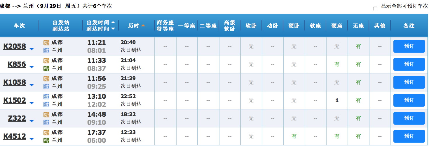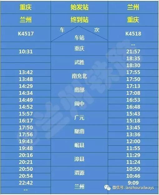 四川新闻网成都9月26日讯(记者 戴璐岭)9月29日兰渝铁路全线即将开通运营,四川新闻网记者从兰州铁路局官方微信公众号了解到,兰渝铁路初期5趟列车时刻表出炉,初期开行5趟列车。成都、绵阳、广元、南充、江油、阆中、苍溪、青川等小伙伴,国庆节去兰州耍,可以走新线了! 此外,四川新闻网记者今日查询12306铁路官网了解到,9月29日即将开通的兰渝铁路开始售票了。首列从兰州发往重庆的兰渝铁路K4518次列车于9月29日上午9:09分正式运营,途径渭源、漳县、岷县、陇南、广元、阆中、南部、南充北、武胜9个站点最终到达重庆。 而经兰渝铁路,由成都开往兰州的K4512次列车于29日下午17:37分从成都站开出,经绵阳、江油、广元、陇南、岷县,第二天早上6点到达兰州,历时12小时23分钟。 票价方面,从成都到兰州的K4512次软卧车票为301元,硬卧194元,硬座112元,比原经宝成线、陇海西线的列车(软卧398.5元,硬卧254.5,硬座148.5元)便宜了不少!从时刻表看,经兰渝铁路开行的列车比此前最快的Z322快了6个多小时,比其他列车快了8-10个小时左右。 另一方向,兰州到成都的K4514次列车9月30日从兰州首发,经渭源、漳县、岷县、陇南、广元、江油、绵阳,于当天21:03分到达成都。