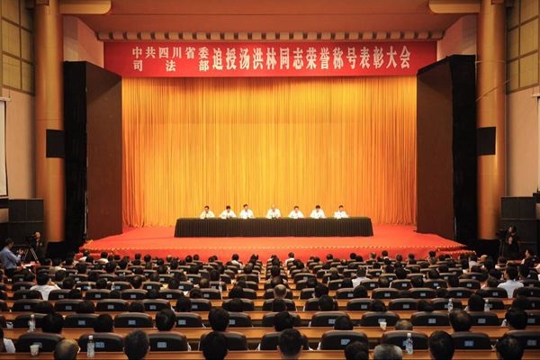 四川日报网消息 (记者 吴忧 钟振宇 摄影 肖雨杨) 9月28日下午,中共四川省委、司法部在成都举行追授汤洪林同志荣誉称号表彰大会。会前,司法部部长张军、省委书记王东明,会见了汤洪林同志亲属代表。张军和省委副书记邓小刚出席表彰大会并讲话。 会见中,张军代表司法部党组及全国司法行政系统广大干警,向汤洪林同志亲属表示慰问。他说,汤洪林同志从警17年,始终牢记党的宗旨和监狱人民警察神圣职责,把满腔热血和毕生精力都献给了党和国家的监狱事业,践行了一名共产党员和监狱人民警察对党、对国家、对人民、对法律的无限忠诚。我们为失去这样一位好同志深感痛惜,更为司法行政系统涌现出这样的好典型而自豪。 王东明代表省委向汤洪林同志亲属表示慰问。他说,汤洪林同志十几年如一日,坚守在监管执法一线,在平凡的岗位上作出了不平凡的业绩,以实际行动践行了忠诚、干净、担当,书写了精彩的人生篇章,是每一位党员干部学习的榜样。全省各级各部门要宣传好汤洪林同志的先进事迹,广泛开展向汤洪林同志学习活动,进一步弘扬主旋律、传播正能量。有关方面要关心照顾好汤洪林同志家属和子女,帮助协调解决生活工作中的具体困难和问题。 汤洪林同志的妻子杜明英感谢各级党组织给予汤洪林的荣誉以及对家人的关心,表示将继承发扬汤洪林的精神和品质,照顾好老人和小孩,勇敢坚强地生活下去。 表彰大会上,司法部副部长、政治部主任王双全宣读《司法部关于追授汤洪林同志“全国司法行政系统一级英模”荣誉称号的决定》,省委常委、组织部部长黄建发宣读《中共四川省委关于追授汤洪林同志“四川省优秀共产党员”称号的决定》。张军和邓小刚分别向汤洪林同志的妻子杜明英、儿子汤童颁发荣誉证书和证章。司法厅主要负责同志介绍了汤洪林同志先进事迹。 张军在讲话中指出,汤洪林同志既是司法行政系统的先进典型,也是新时期共产党员的楷模。全国司法行政系统和广大司法干警要以汤洪林同志为榜样,学习他忠诚信仰、不辱使命的政治品格,做信念坚定的模范;学习他坚守底线、公正执法的职业操守,做促进公平正义的模范;学习他勤勉尽责、甘于奉献的高尚情操,做敢于担当的模范;学习他心系群众、鞠躬尽瘁的公仆精神,做为民服务的模范。要大力弘扬汤洪林同志的崇高精神和高尚风范,使之转化为激励我们不断前行的强大动力,推动司法行政事业不断取得新发展。 邓小刚在讲话中指出,全省广大党员干部要牢固树立“四个意识”,特别是核心意识、看齐意识,认真落实中央和省委决策部署,从汤洪林同志先进事迹中汲取精神的力量、信念的力量、奋进的力量,不忘初心、继续前进,积极投身实施“三大发展战略”、推进“两个跨越”的生动实践,以只争朝夕的精神、时不我待的干劲,在本职岗位上干出无愧于时代、无愧于人民的业绩,加快建设美丽繁荣和谐四川,推动治蜀兴川再上新台阶,在全面建成小康社会决胜阶段再立新功,以优异的成绩迎接党的十九大胜利召开。 省委常委、政法委书记邓勇,省委常委、秘书长王铭晖参加有关活动。部分省直机关、省市政法系统负责同志,党政干部和政法干警代表700多人参加表彰大会。 汤洪林同志生前系巴中监狱六监区党支部书记、监区长。他从警17年始终对党忠诚、恪尽职守,精钻业务、秉公执法,默默奉献,创造性提出罪犯改造“七步工作法”,用真情帮助一大批服刑人员改过自新。他始终肩负“司法是维护公平正义的最后一道防线”的责任担当,绷紧法纪准绳,慎用执法权力,办理的100多件减刑、假释、暂予监外执行案件无一差错。特别是在危急关头,他舍生忘死、冲锋在前,多次冒着生命危险抓捕罪犯。今年3月,他在工作中突发疾病,经抢救无效不幸离世,年仅37岁。汤洪林同志的亲属按他生前遗愿捐献了眼角膜,让两名患者重见光明,把温暖留在了人间。 原标题:追授汤洪林同志荣誉称号表彰大会在成都举行