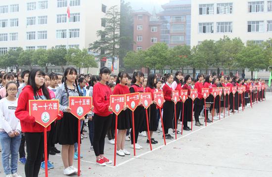 在庄严的升旗仪式过后, 杜主任介绍了主席台就坐的领导,出席本次运动会开幕式的领导有:学校党支部书记校长任尊甫、分管教学副校长邱文仕以及全体中层领导。 受分管政工副校长孙武的委托,学校体卫艺处副主任董正泉向开幕式致辞。他向同学们提出了希望:希望每位运动员精神饱满,斗志昂扬,拼出成绩,赛出风格,让青春的活力迸发在赛场上的每个角落;希望全体裁判员、工作人员忠于职守,树立安全第一、热情服务、严守规则,做到公正裁判;希望各位运动员遵守比赛规则和赛场纪律,服从裁判,尊重对手 ,团结协作,顽强拼搏,赛出风格,赛出水平。做到“友谊第一,比赛第二”。以积极饱满热情的态度参加本届运动会;希望没有比赛项目的同学,要服从学校管理,文明参观、主动服务,为运动员摇旗呐喊,加油助威,为争创精神文明班级、争创优秀文明班级做出应有的贡献。随后总裁判长王跃、运动员代表先后进行了宣誓。  | | 比赛现场(曾森林供图) |
