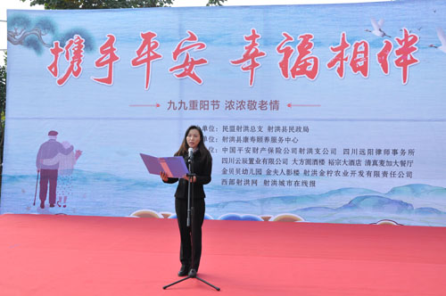 活动在大家热烈的掌声中拉开帷幕。首先马英致辞,对关心支持射洪县养老事业发展的各界人士表示了感谢,同时对在场的各位老人表示关心与祝福。