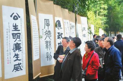 11月26日,“第四届中国廉政文化书画展全国巡展——习近平引经据典专题展四川展”在成都望江楼公园举行。现场展出1000余幅廉政文化书画作品,吸引了众多市民展。