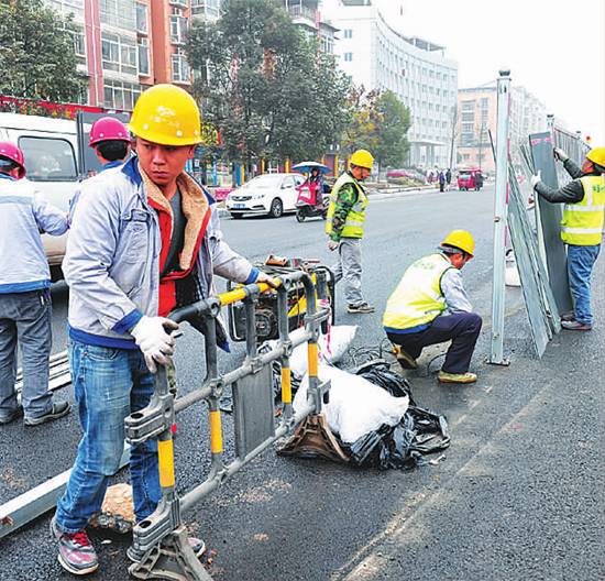 整条道路力争在2018年元旦节实现全面通车  | | 昨日,工人在东顺路西段拆除施工隔离挡板 |
