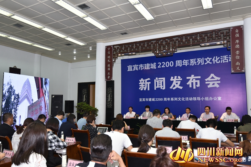 新闻发布会现场 四川新闻网成都9月8日讯(记者 周瑜原 摄影报道)9月7日,宜宾市建城2200周年系列文化活动新闻发布会在成都举行。记者从会上获悉,此次活动将于9月18日-19日在宜宾举行,既有浓烈的历史文化厚重感,又体现出强烈的开放性、时代性。该系列活动分为主要活动和版块活动两个部分,主要活动包括宜宾市建城2200周年大会、“长江首城·醉美千年”文化联谊晚会、“培育新动能·创想新价值”长江经济带产业金融高端对话三项内容;版块活动包括商贸活动、宣传活动、文化活动等五项内容。