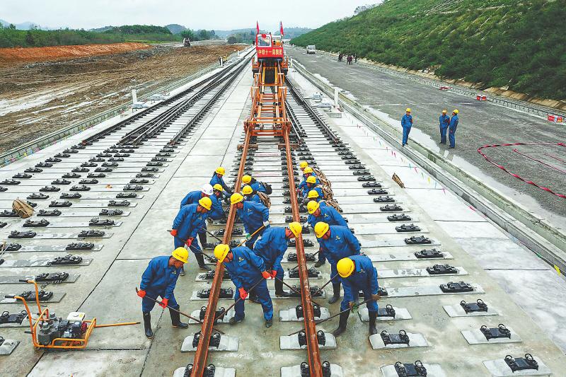 原标题:成贵铁路云贵段正线开始铺轨