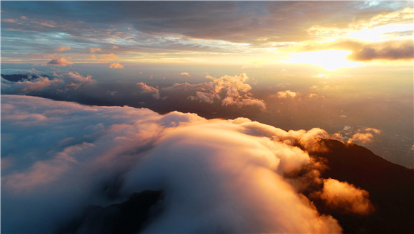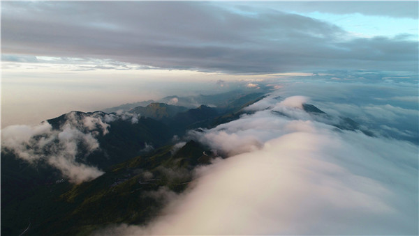 四川省华蓥山是20世纪30至40年代川东游击纵队的根据地和主战场。其主峰“高登古刹”和次高峰“宝鼎”周围经常出现的云海,飞云铺盖,群山浮海,风起云涌,气势磅礴,是华蓥山的一大奇观绝景;站在高登山顶或宝鼎俯视周围,只见千峰竞秀,万壑云封,苍松密立,山泉漫流,虚无缥缈,瞬息万变,人们观看后无不赞叹:“宝鼎之奇莫如云”。华蓥云海,四季常现,每当雨过天晴之时,云雾蒸岚,缠绕群峰,时而“峰向雾中消”,时而“云奔山欲摇”,时而“风吹云气迷谷起”,时而“云开万岭明”,时而云如沧海,时而雾若瀑布。“云与山为体,山与云为衣”,展现出一幅幅云恋着山,山恋着云,缠绵缱倦,难舍难分的诗情画意图卷,在川渝大地上起伏彭拜,壮美瑰丽。  | | 华蓥山高登连云 |