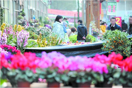 2019年1月28日,随着春节一天天临近,与年节相关的商品消费越发红火。在三圣花乡花卉市场,众多市民争相选购鲜花盆栽,用来装饰家居。据一位鲜花店店主介绍,临近春节,一些名字寓意美好吉祥、色彩鲜艳的花卉特别受人青睐。本报记者 李冬 摄影报道