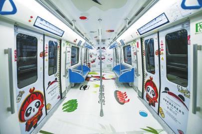 5月13日起,成都熊猫亚洲美食节主题列车“胖墩号”将在成都地铁1号线上运行,持续至26日。 “胖墩号”6节车厢被划分为:成都熊猫亚洲美食节、拔草节全域狂欢、百家体验餐厅、火锅创意集市、吃货地图、舌尖上的亚洲六大主题板块,介绍成都美食、餐厅,解读成都吃货地图。 本报记者杨树摄