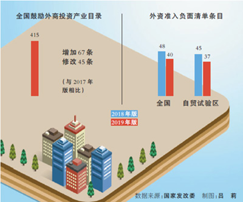 二〇一九年版外资准入负面清单、鼓励外商投资产业目录发布 一减一增,外资准入再放宽 6月30日,国家发展改革委、商务部发布《外商投资准入特别管理措施(负面清单)(2019年版)》《自由贸易试验区外商投资准入特别管理措施(负面清单)(2019年版)》和《鼓励外商投资产业目录(2019年版)》(以下简称2019年版鼓励目录)。 “‘清单’和‘目录’同时发布,有利于吸引相关行业全球优质资本和高素质人才进入我国,为我国经济高质量发展注入更强动力,推动我国和合作方共同构建高水平的国际合作分工格局,也彰显了我国坚持贸易投资自由化理念,促进全球化深入发展的重大决心,对于全球跨境直接投资具有非常显著的积极促进作用。”中国宏观经济研究院对外经济研究所所长叶辅靖说。
