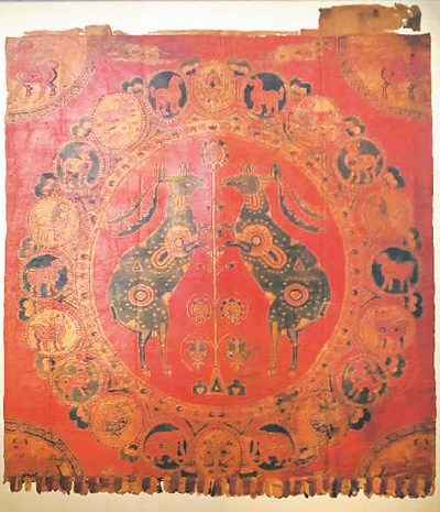 团窠对鹿纹挂锦,中亚,瑞士阿贝格基金会纺织品保护研究中心收藏