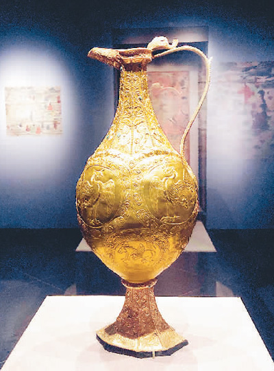 神鸟神兽纹嵌绿松石金胡瓶,中亚西部或吐蕃早期,美国普利兹克收藏