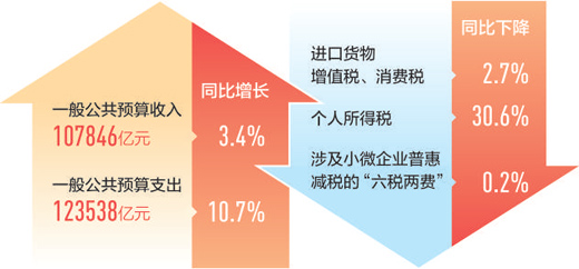财政部16日举行发布会,通报上半年全国财政收支情况:全国一般公共预算收入107846亿元,同比增长3.4%;全国一般公共预算支出123538亿元,同比增长10.7%;全国税收收入92424亿元,同比增长0.9%;非税收入15422亿元,同比增长21.4%。 非税收入增长较快 主动盘活资金 并未提高收费 财政部国库集中支付中心主任刘金云说,上半年积极的财政政策加力提效,确保减税降费落地生根,财政收入运行主要有以下特点: 减税降费效果持续加大,相关收入同比下降或增幅回落。分税种看,国内增值税同比增长5.9%,比去年同期增幅回落10.7个百分点;企业所得税同比增长5.3%,比去年同期增幅回落7.5个百分点;进口货物增值税、消费税同比下降2.7%;个人所得税同比下降30.6%;涉及小微企业普惠减税的“六税两费”合计下降0.2%。 减税政策在制造业等行业体现明显,上半年税收收入比一季度显著回落。上半年全国税收收入增长比一季度增幅回落4.5个百分点。“其中,二季度下降3.3%,特别是从5月份起,深化增值税改革减税效果更加突出,税收收入连续两个月下降,主要行业受益明显。”刘金云表示。 非税收入增长较快。上半年,全国非税收入15422亿元,同比增长21.4%。其中,国有资本经营收入2203亿元,增长3.4倍;国有资源(资产)有偿使用收入4416亿元,增长18.3%。上述2项合计增收2388亿元,占全国非税收入增收额的88%。 刘金云特别指出,非税收入增长较快的原因,主要是各级财政部门积极应对减税降费带来的收支平衡压力,多渠道盘活国有资金和资产,带动相关收入增加,并非提高收费增加的收入。 “综合看,上半年财政收入运行总体平稳,如果将减税等因素还原回去,全国财政收入增幅与GDP现价增幅基本匹配,保持在合理区间。”刘金云说。 税收收入增速回落 减税降费显效 继续加强监督 税政司巡视员徐国乔介绍,减税降费政策落实总体平稳有序,效果逐步显现并符合预期。2019年上半年,全国税收收入累计增速与2018年相比,同期回落了13.5个百分点。 厦门大学教授邓子基认为,减税降费减轻企业的负担,大大增强企业活力,稳定了预期。“人民群众有了很强的获得感。” 徐国乔表示,针对政策实施过程中出现的新情况、新问题,财政部将提前做好应对预案,不断完善政策举措,确保所有行业税负只减不增。“进一步加强监督检查,严肃查处政策不落实、增加企业负担、损害群众利益等问题,对搞变通、打折扣或变换花样乱收费抵消减税效果的,发现一起查处一起,决不姑息。” 转移支付进度加快 保障重点领域 加大民生投入 刘金云表示,上半年,全国一般公共预算支出同比增长10.7%,增幅比去年同期提高2.9个百分点,比预算增幅高4.2个百分点;支出进度为52.5%,比序时进度快2.5个百分点,为实施国家重大发展战略、推进重点领域改革、保障和改善民生提供了有力保障。 各级财政部门大力压减一般性支出,重点增加了对脱贫攻坚、“三农”、结构调整、科技创新、生态环保,以及社保、教育、卫生等民生重点领域的投入,并切实抓好预算执行。 上半年,农林水支出中的扶贫支出增长46.7%;节能环保支出中的污染防治、自然生态保护支出,分别增长22.2%、33.5%;科学技术支出中的应用研究、技术研究与开发支出,分别增长19.1%、13.3%;卫生健康支出中的公立医院、公共卫生支出,分别增长14%、11.3%;教育支出中的普通教育、职业教育支出,分别增长10.5%、11.7%。 预算司副司长郝磊介绍,受落实减税降费等因素影响,今年财政收入增幅放缓,收支压力有所加大。中央财政加快对地方转移支付下达进度,督促和指导地方加强收支预算管理,做好基层财政保障,保工资、保运转、保基本民生。 制图:蔡华伟 《 人民日报 》( 2019年07月17日 02 版) 原标题:上半年财政收入运行总体平稳 增幅保持在合理区间(权威发布·年中经济看亮点) |