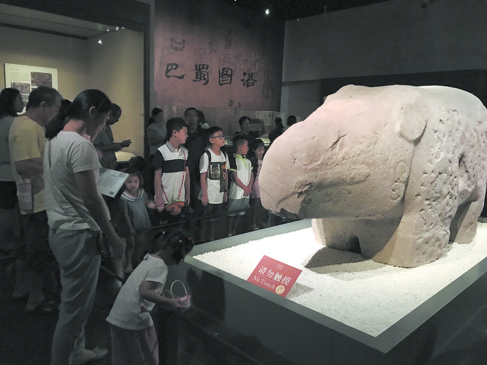 在成都日报与成都五大博物馆联合举办的“博悟之旅——小小文物守护人”活动中,很多小朋友都拿起画笔描绘了成都博物馆的镇馆之宝——萌萌哒的石犀。 昨日,“博悟之旅——小小文物守护人”暑期文博大通关第五期活动走进成都博物馆,在社教老师刘媛媛的指导下,小朋友们聆听了都江堰和石犀的故事,并且拿起画笔,展开自己的想象力,描绘心中的石犀。 你知道石犀和都江堰是什么关系吗? “博悟之旅——小小文物守护人”暑期文博大通关第五期《天府石犀》社教活动一开始,刘媛媛老师就和小朋友们探讨起人类和水的关系。明明这期活动的主题是“天府石犀”,石犀和水有什么关系? 原来,成都博物馆的镇馆之宝和著名的都江堰水利工程之间大有关系。 2000多年前秦国太守李冰主持修筑了都江堰水利工程。都江堰水利工程,是成都平原灌溉系统的总枢纽。岷江水流出岷山后,进入成都平原之前,在人造的分水鱼嘴处分为外江和内江,内江灌溉,外江排洪。有了都江堰水利工程,水从灾害变成了资源,《华阳国志》评价,成都平原从此“水旱从人,不知饥馑。时无荒年,天下谓之‘天府’也。” 那么石犀和都江堰是什么关系呢?刘媛媛老师告诉小朋友们,当年李冰治水初成,凿石犀五枚,二枚在府中,一枚在市桥下,二枚在渊中,“以厌水精”,成都博物馆的石犀就是其中一枚。 你知道石犀是在哪里出土的吗? 小朋友们最喜欢的成都博物馆镇馆之宝石犀是从哪里出土的? 在此次的“博悟之旅——小小文物守护人”活动中,参赛者谢佳倪小朋友画了一幅铅笔画,在这幅画上,小朋友是一名考古学家,拿着手铲正在挖掘石犀,小朋友掘了一个差不多一人高的坑,而巨大的石犀只露出一点脊背,一大半还埋没在土里。石犀眨着亮闪闪的眼睛,似乎在说:“小朋友,快点把我挖出来吧。” 那么,石犀是在哪里被发现的呢?刘媛媛老师让小朋友们透过成都博物馆的玻璃幕墙往外看,在刘媛媛老师的指点下,小朋友们的目光越过美丽的天府广场,只见在天府广场的东北侧,新建了一座漂亮的大楼,那是四川大剧院,石犀就是在那里出土的。 刘媛媛老师展示了2013年初刚刚出土的石犀照片,当时石犀半边肩头有一层厚厚的水泥,另一侧“皮肤”皲裂,文保专家为它洗了一个“澡”,并为它做了一番脱盐、脱水、加固等“护理”工作,石犀的“庐山真面目”终于显现。 小朋友描绘心目中的多彩石犀 用红砂石开凿的石犀,憨态可掬,让小朋友们喜爱不已。成都博物馆开发了一款文创产品:陶器小石犀。昨日,刘媛媛老师将陶器小石犀分发给了现场的小朋友们,还为小朋友们分发了画笔和水彩盒,小朋友们可以拿着画笔为石犀着色。 小朋友心目中的石犀是彩色的,成都七中初中附属小学张芸溪小朋友选择了绿色、黄色、红色为石犀着色,盐道街小学通桂校区的黄鑫小朋友同样也选取了这几种颜色,他们描绘的石犀,色彩斑斓,充满了阳光活力。 在着色活动中,可以看到小朋友们都观察得很细致,来自石室佳兴外国语学校的谢鹏睿小朋友很细心地为石犀描绘上了云纹。很多小朋友都把自己观察到的石犀的特征描绘了出来。 最后,小朋友们在刘媛媛老师的带领下,来到成都博物馆二楼“花重锦官城”展厅,近距离观察出土于天府广场东北角的石犀,将真实的石犀与自己的“作品”对照印证。 本报记者 汪兰 摄影报道 原标题:小选手进成博 为“石犀”画彩衣 |