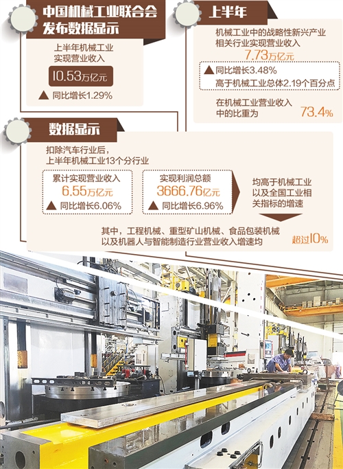 图为中国兵器工业集团武汉重型机床集团有限公司生产车间。 本报记者 刘 瑾摄 今年以来,国内机械工业主要经济指标低位运行,受汽车行业下滑影响较大。在日趋复杂的国内外发展环境下,机械工业承压前行,行业内部结构得到进一步优化。下半年,随着深挖国内市场潜力、拓展扩大最终消费、稳定制造业投资等政策的实施,以及减税降费政策的落实,机械工业经济运行环境将有所改善,企业发展活力将进一步释放—— 中国机械工业联合会近日发布的数据显示,上半年机械工业实现营业收入10.53万亿元,同比增长1.29%。中机联执行副会长陈斌表示,机械行业发展稳步推进,但问题和压力依然存在。初步预计全年经济运行总体将比较平稳,工业增加值力争达到6%左右,营业收入、利润总额及进出口贸易保持适度增长。 细分行业总体良好 今年以来,机械工业主要经济指标低位运行,受汽车行业下滑影响较大。 数据显示,扣除汽车行业后,上半年机械工业13个分行业累计实现营业收入6.55万亿元,同比增长6.06%;实现利润总额3666.76亿元,同比增长6.96%;均高于机械工业以及全国工业相关指标增速。其中,工程机械、重型矿山机械、食品包装机械以及机器人与智能制造行业营业收入增速均超过10%,表明机械工业分行业运行态势总体良好。 陈斌表示,纵观上半年,年初开局低迷产销延续上年回落趋势,3月份有一定回升,4月份后又有所波动,产品产量出现分化、效益指标降幅收窄、投资增速缓中趋稳、价格指数低位徘徊。在日趋复杂的国内外发展环境下,机械工业承压前行,但行业内部结构进一步优化。 新旧动能转换持续推进,新动能发展亮点纷呈。新能源汽车产销保持了高速增长,上半年累计生产销售61.4万辆和61.7万辆,同比分别增长48.5%和49.6%。发电设备制造业近两年总体处于调整期,但风电设备上半年产量保持了18.45%的增速,行业营业收入和利润总额增速均超过50%。 战略性新兴产业持续发力,带动行业平稳发展。上半年机械工业中的战略性新兴产业相关行业实现营业收入7.73万亿元,同比增长3.48%,高于机械工业总体2.19个百分点,在机械工业营业收入中的比重为73.4%,比上年同期提高了1.56个百分点,战略性新兴产业对机械工业平稳发展的带动作用增强。 重大装备投入使用 5月10日,中国兵器工业集团武汉重型机床集团有限公司正式签订承担某大型科研试验用机械系统外委制造项目合同,以超3亿元的合同金额再次刷新机床行业单笔合同额纪录。该项目属于空气动力地面试验战略性设备,建成后将打破国际技术封锁,是我国专机制造业又一具有里程碑意义的重大突破。 重大技术装备是关系国家安全和国民经济命脉的基础性、战略性产品,是国家综合实力和核心竞争力的重要标志。 陈斌表示,近年来机械工业在重大技术装备自主研发中不断取得突破,创新成果正逐步投入使用。 2019年1月份,由国家电网公司、中国西电集团、特变电工等单位历时6年研制建设而成的昌吉—古泉±1100千伏特高压直流输电线路成功实现全压送电,标志着我国成为世界首个具备3000公里至5000公里范围内输送千万千瓦级电能能力的国家。 该条线路起于新疆昌吉换流站,止于安徽宣城古泉换流站,途经甘肃、宁夏、陕西、河南,全长3293公里,额定电压±1100千伏,输电容量1200万千瓦,是目前世界上电压等级最高、输送容量最大、输电距离最远、技术水平最先进的输电线路。 昌吉—古泉±1100千伏特高压直流输电线路是“疆电外送”标志性工程。据了解,该线路启动后,每年可送电660亿千瓦时,满足5000万家庭的用电需求,可减少燃煤运输3024万吨,相当于减少2.5万趟20节车皮的列车运输量,对促进新疆能源基地开发和全国范围的优化资源配置具有重大意义。 此外,由徐工集团研制的9桥1600吨全地面起重机——XCA1600在河北柏乡风电场顺利完成140米高、近90吨风机的安装,创造了全地面起重机风电安装高度世界纪录。由上海电气船用曲轴有限公司承制的W12X92船用曲轴正式下线。该曲轴采用拼接式结构,总长度23.5米,重量达488吨,是目前全球最重的船用曲轴。 短短半年时间里,诸多重大技术创新成果投入运用,机械工业稳步发展,也得到了国际市场上更多的认可。 上半年,机械工业民营企业外贸出口实现了7.33%的增长;徐工集团出口北美的挖掘机数量成倍增长;特变电工集团在“一带一路”上承建吉尔吉斯斯坦“达特卡—克明”输变电工程和塔吉克斯坦杜尚别热电厂项目;玉柴集团发动机在韩国境内成功配套新船,打开了韩国市场的大门。 在压力中寻找动力 值得注意的是,今年以来受汽车行业影响,机械行业经济运行承受了一定压力,虽然主要指标仍在合理区间,但形势严峻程度超过年初预期。 “市场疲软、需求不足是一段时期以来持续困扰机械行业发展的问题。”陈斌表示,由于订货量不足生产不旺,行业产能利用率有所下降,加上成本压力大、价格传导难造成企业效益低。 此外,应收票据及应收账款数额大、回收难是当前影响机械企业生产经营最为突出的问题之一。2019年上半年机械工业应收票据及应收账款总额已达到5.62万亿元,同比增长4.08%,占全国工业应收票据及应收账款总额的三分之一。机械工业自2006年以来流动资金周转率都在2次以上,2018年仅为1.53次,2019年上半年继续下降至1.46次,运行效率明显下降。 陈斌表示,6月份