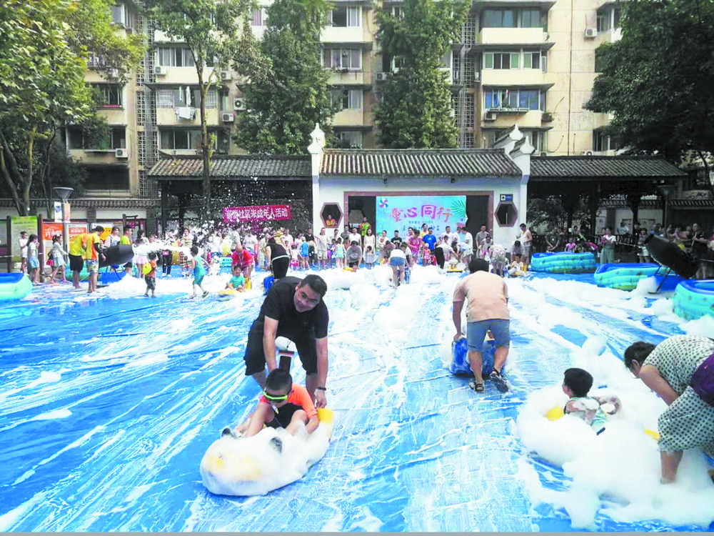 欢乐亲子水时光 炎炎夏日,酷暑难挨,试问何以解暑,答曰戏水。8月17日下午,成都高新区芳草街街道蓓蕾社区关工小组在翠园广场举行“激情夏日 快乐成长”泡沫之夏活动。旨在为社区儿童度过一个清凉快乐暑假的同时,通过亲子互动,加深亲子融合,共享亲子美好时光。 烈日当空,却挡不住小朋友们的热情,一个个身着小泳衣,手拿小水枪,和家长兴高采烈来到活动现场。伸伸胳膊、扭扭腰……热身运动开始了,大朋友和小朋友,跟随主持人的口令,伴随着动感的律动,可爱极了。随后开展西瓜比赛环节、极速赛艇环节、水球传递环节、拔河环节、水枪大战环节等游戏,环环相扣、妙趣横生。现场尽是一片蓝色的汪洋,雪白的泡沫漫天飞舞,与水交相辉映,嬉戏声、追逐声、呐喊声齐上阵,大家穿梭在“枪林弹雨”中,你追我赶,好不热闹!尽管一个个都全身湿透,嘴角却向上弯起,露出甜甜笑容。场内的快乐也感染了诸多行人,驻足观看、拍照。 快乐的时光总是短暂的,陪伴是最长情的告白。虽然活动短短两个小时,但留给家长与小朋友的是守候着的温馨的亲子时光,享受玩水的乐趣,感受美好童真。 本报记者 邓婧 文/图 原标题:举办亲子水上游戏 陪伴孩子快乐成长 |