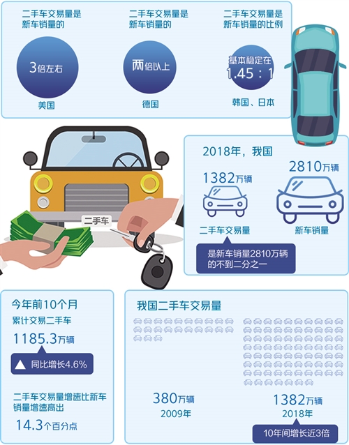 前10个月,二手车交易量增速比新车销量增速高出14.3个百分点。从发达国家发展历程来看,美国、德国等汽车大国二手车交易量一直是新车销量的两倍以上;反观我国二手车交易量仍只有新车销量的不到二分之一,充分显示出我国二手车市场未来发展潜力。随着电商平台入局,过去阻碍二手车市场发展的诚信等问题有望得到解决—— 在新车市场疲软同时,二手车市场却迎来了春天。日前,中国汽车流通协会统计数据显示,10月份全国二手车交易量126.7万辆,同比增长7.3%。前10个月,累计交易二手车1185.3万辆,同比增长4.6%,二手车交易量增速比新车销量增速高出14.3个百分点。专家表示,10月份二手车市场延续“金九银十”良好态势,市场前景看好。 存量市场将占主导 汽车产业一直被喻为“宏观经济稳定器”,不仅对上游生产制造环节,而且对下游金融、保险、维修、旅游、餐饮等产业也具有明显拉动作用。权威数据显示,汽车消费对社会消费品零售额同比增速的贡献率可达20%。在新车消费放缓趋势下,促进二手车流通成为扩大内需的重要手段之一。 据了解,全球主要汽车大国均拥有远超新车销售的庞大二手车市场。从1986年到1996年的10年间,美国500强零售商新车销售量降低了8.8%,但二手车销售量却上升了40%。自1990年开始,美国二手车年交易量稳定在4000万至4500万辆之间,是新车销量的3倍左右;每辆二手车平均价格约为1.65万美元,由此计算,美国每年二手车市场约有6000亿至7000亿美元。 近十几年来,德国二手车交易量也一直是新车销量的两倍以上,韩国、日本的这一比例也基本稳定在1.45∶1。同时,2017年德国汽车金融渗透率达到76.7%。 2009年至2018年,我国二手车交易量从380万辆增加到1382万辆,10年间增长近3倍,发展势头强劲;但是,与2018年新车销量2810万辆相比,二手车交易量仍只有新车销量的不到二分之一,这说明我国二手车市场仍有很大发展空间。过去8年间,二手车交易额年复合增长率也超过22%;预计今年二手车交易额有望突破1万亿元大关。 业内人士认为,根据发达国家汽车产业发展历程和我国新车保有量不断增长的趋势,未来我国汽车消费仍有增长空间,但增速会逐步放缓;主导力量将由以新车销售为主的增量市场,转向以二手车流通为主的存量市场。 诚信缺失阻碍潜力释放 近年来,有关部门多次联合发布鼓励二手车消费利好政策,以刺激市场容量增长,从政策层面为二手车市场发展保驾护航。日前,国务院印发《关于进一步扩大和升级信息消费持续释放内需潜力的指导意见》,明确提出鼓励建立线上线下全渠道、业态融合体验式消费场景的新业态、新模式,以有效释放市场活力与消费需求。此外,在促进二手车流通方面,落实全面取消二手车限迁政策也多次被提及,从各个方面进一步刺激二手车消费。 目前,车主如果想要转让二手车,大致有以下几个途径:一是转让给自己认识的人,也称“熟人交易”;二是通过4S店置换新车;三是线下二手车市场交易。其中,由于二手车市场交易成交时间短、比例高,出售时间和手续办理比较方便,是目前主流的二手车交易方式。 不过,由于二手车商品的独特性,以及市场监管体系、政策规范不完善,经营理念、交易模式、市场环境均十分落后。在传统线下二手车交易市场,往往有部分“黑车商”充斥其中,交易欺诈、隐瞒车况、牟取不法暴利等不诚信行为屡见不鲜,在损害消费者权益同时,也为使用者及道路交通带来了严重安全隐患。 据中国汽车流通协会统计,目前二手车经销商超过15万家,平均每家年交易量仅不足100台,零散化交易严重阻碍了行业走向规模化发展。此外,传统二手车交易由于买卖双方之间信息不对称,车况与车价均缺乏透明度,造成用户对传统二手车交易存在极大不信任感,严重影响了二手车行业的整体信誉与口碑,影响了二手车市场潜力释放。 电商平台破解“痛点” 近年来,二手车电商蓬勃发展,使得突破上述行业“瓶颈”成为可能,助推了我国二手车市场加速发展。以瓜子二手车为例,以平台经济为依托的新技术、新业态、新模式渗透并重构了传统产业格局,着力解决行业“痛点”,更好保护消费者的合法权益,同时平台自身也获得了高速发展。 北京交通大学服务经济与新兴产业研究所所长冯华认为,互联网新经济时代,汽车交易已经进入平台经济的发展新阶段,全国统一的二手车交易大平台必然会迅速崛起。以平台为基础形成的产业生态,行业龙头企业是平台的组织者、引领者,对整个产业规范和创新都有意义,将有效助推二手车市场走向规范和高质量发展。 冯华表示,互联网平台对传统二手车行业有以下推动作用,一是促进行业透明。互联网平台企业通过大数据和人工智能技术应用,构建了车况透明、标准化定价的交易方式。二是加速跨区域汽车流通。互联网可轻松打破物理空间限制,有效聚集车源,加之物流、装备等相关基础设施建设,可更加有效促进跨区域汽车流通。三是提升产业价值。与传统二手车交易只做“一锤子买卖”相比,互联网平台通过构建并完善生态服务链,使二手车交易由低频交易向高频服务转变,大幅提质增效。 除此之外,与传统业态相比,互联网平台更有动力加强自身责任,保护消费者权益。中国人民大学未来法治研究院研究员熊丙万表示,平台有市场属性,平台经营者既要培育、经营市场,同时