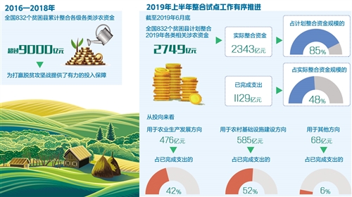 大项目一般都需要连续性的、及时的资金支持,以往零星分散的各部门资金往往难以满足。而资金整合后,县级就有更大权限能够集中财力对项目持续支持,使其能更快落地见效。 □ 财政涉农资金更加聚焦集中后,对社会资本的吸引力也越来越大,杠杆作用不断增强。 “以前哪见过这么多钱!”11月中旬,走在河北省滦平县马营子满族乡大兴沟村的食用菌基地内,马营子满族乡党委书记史海龙给经济日报记者道了番心里话:以前得去“跑部门、争项目”,乡上、村里拿到资金不容易也很有限。涉农资金整合后,资金集中“捆绑”使用,他们乡2016年以来获得财政项目资金支持达2500万元,食用菌等产业发展如火如荼,群众生活条件大幅改善。 2016年,国务院办公厅发布《关于支持贫困县开展统筹整合使用财政涉农资金试点的意见》(以下简称《意见》)提出,形成“多个渠道引水、一个龙头放水”的扶贫投入新格局。目前,这一改革对脱贫攻坚产生怎样的支撑作用?在具体实践中到底怎么整、怎么用?带着这些疑问,记者近日赴整合资金规模较大的河北省调查采访。 资金整合效果好 “涉农资金统筹整合使用,说通俗点就是集中财力干大事。”河北省滦平县财政局局长刘小平告诉记者。过去县里从不同部门拿到钱,每一笔分门别类,量少不说,“打酱油的钱不能买醋”“修路的钱不能打井”,要想系统实施一个大项目挺不容易。 为提高财政涉农资金使用效率,2016年,我国在连片特困地区县和国家扶贫开发工作重点县范围内,优先选择部分贫困县开展涉农资金整合试点。2017年以来,财政部会同国务院扶贫办将该试点推广至全部832个国家扶贫开发工作重点县和连片特困地区县,并鼓励试点贫困县尽可能在“大类间打通”“跨类别使用”,做到“应整尽整”。 根据《意见》,统筹整合使用的资金范围是各级财政安排用于农业生产发展和农村基础设施建设等方面的资金。中央层面主要有财政专项扶贫资金、农田水利设施建设和水土保持补助资金等20项。各省结合本地实际,明确本级财政安排的涉农资金中贫困县可统筹整合使用的资金范围。 河北省除了将与中央资金对应的12项资金纳入整合使用范围,还将自主安排的8项资金一并纳入整合使用范围。 “滦平县2016年至2019年累计整合涉农资金约11亿元。财政涉农资金更加聚焦集中后,对社会资本的吸引力也越来越大,杠杆作用不断增强。”刘小平说,这几年全县用于扶贫产业的整合资金达到7.27亿元,引导和撬动了金融资本、社会帮扶资金近24亿元。 据河北省财政厅农业农村处有关负责人介绍,2016年至2019年,河北省贫困县实际整合使用涉农资金443.8亿元,占计划整合资金规模的100%。 记者在河北省多个涉农资金整合试点县采访时,干部们普遍反映:“没有涉农资金整合,脱贫摘帽不可能这么快。” 项目落地更准确 财政部有关负责人介绍:“从各地上报数据看,今年上半年全国涉农资金投向进一步优化,投向农业生产发展方向的资金占比同比提升3个百分点,投向农村基础设施建设方向的资金占比同比下降1个百分点,初步体现了优先发展产业的要求。” “过去我们村里要争取项目很难,只能靠乡里帮着跑和给。来了项目也不管需不需要都干,有时让群众不太满意。”大兴沟村党支部书记兼村委会主任张子兵向记者坦言。 涉农资金整合后,资金项目审批权限完全下放到贫困县,村里由过去被动接项目变成了主动报项目。如,河北建立了县级脱贫攻坚项目库,各村、乡立足自身情况,广泛征求民意,自下而上报项目。 “资金整合后,项目配备由老百姓说了算。只要符合政策、急需的项目都会有着落。和以前比资金使用效率更高,项目落地也更准确。”张子兵说。 “涉农资金整合让我们更加根据自己需要实事求是谋划项目。”史海龙介绍了他们项目上报的流程:由各村工作专班牵头组织村民代表、贫困户代表、党员代表参与,严格按照脱贫攻坚具体要求组建项目库,在村级公示无异议后上报乡镇审核。乡党委会对各村上报的项目进行专题研究审核,剔除负面清单内超标准、不符合条件的项目后,再根据各村实际情况按照“轻重缓急”的原则科学确定项目实施年度,并经乡、村两级公示无异议后上报县扶贫开发工作领导小组审批。 “可持续性和时效性是涉农资金整合后在项目支持上的两大显著优势。”刘小平说,大项目一般都需要连续性的、及时的资金支持,以往零星分散的各部门资金往往难以满足。而资金整合后,县上就有更大权限能够集中财力对项目持续支持,使其能更快落地见效。 比如大兴沟村的食用菌基地项目,先是靠整合资金支持建起了菌棚。后来村里发现仅有菌棚还不够,还需要建冷库,这样能更好地储存食用菌,有效应对市场价格波动。这一需求经评议通过后,资金支持立马跟进。有了整合资金的强力支持,该项目建成后通过与市场化公司合作经营,带动123户农户出租土地210亩,每亩年租金800元,旺季时可为村提供就业岗位100人,其中建档立卡贫困户占比70%。 确保钱花在刀刃上 当贫困县面对整合后的更多涉农资金,究竟如何确保每一笔钱都花在刀刃上?今年10月份,财政部农业农村司召开贫困县涉农资金整合试点工作座谈会。会议要求:进一步提高政治站位,落实主体责任,加强督促指导,强化整合资金监管,做实做细整合试点工作,确保