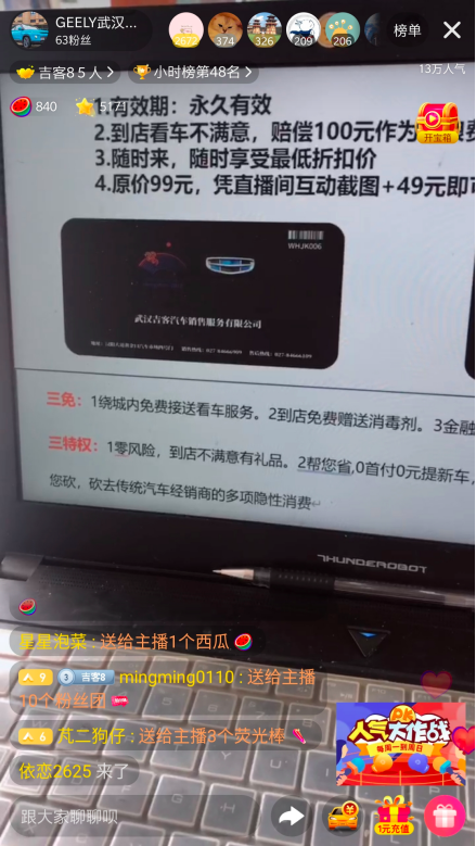 武汉吉利汽车4S店的销售负责人大海,在比对各个直播平台之后,选择把抖音作为自己的“直播阵地”。