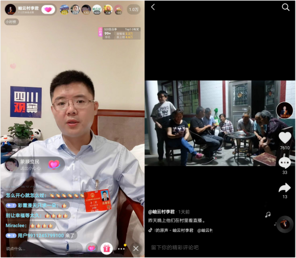 “因为受新冠疫情的影响,我今年履职的时候,就通过拍视频、开直播的方式,收集了很多对于我履职有用的意见,我觉得互联网也是我们创新履职的一种方式。”在全国两会“代表通道”上,李君说,5月22日晚,他在抖音直播间里开了一场村民大会,本想给岫云村村民传达两会的见闻和感受,没想到吸引了上万名网友围观。