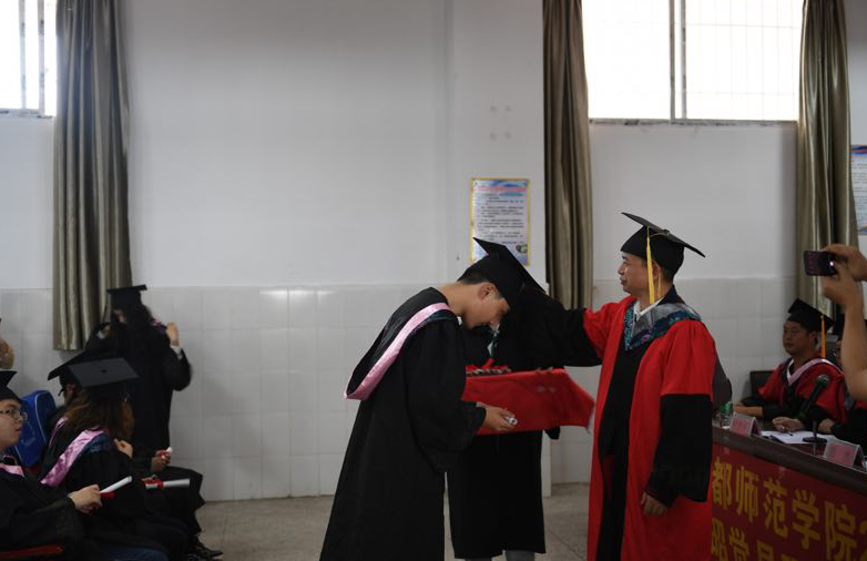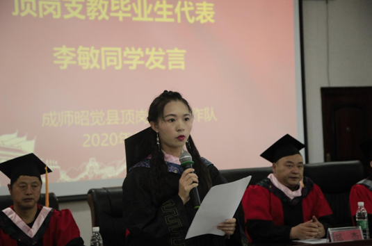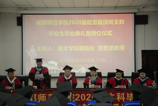 四川新闻网凉山讯(郭幸鑫 记者 陈荞)2020年6月21日,成都师范学院举行了一场特殊的“毕业典礼和授位仪式”。学校相关处室、二级学院领导专程从成都赶往凉山州,为在那里扶贫顶岗的82名毕业生举行毕业典礼和授位仪式。当地教育体育与科学技术局领导、全体支教毕业生、非毕业年级学生代表和支教小学生代表参加了授位仪式。 长期以来,成都师范学院党委行政以高度的政治责任感和事业心,积极投身脱贫攻坚大战场,近三年来,除了向贫困地区派出扶贫干部助力脱贫外,还结合师范院校特点,“扶贫先扶智”,先后派出近400名优秀学生到甘孜州、凉山州、阿坝州贫困地区扶贫顶岗。今年,单是派到凉山州就有149名学生。为了让其中82名毕业学生既安心支教,又不错过人生重要的大学毕业典礼和授位仪式,学校党委决定将毕业典礼和授位仪式现场搬到脱贫攻坚战前线。 毕业典礼和授位仪式在昭觉县民族重点寄宿制小学简陋的会议室举行,毕业同学身穿专门从成都带来的学士服,心潮澎湃。 典礼由美术学院副院长贺思恩教授主持。在庄严的国歌声中,学校学术委员会代表化生学院副院长刘松青教授饱含深情,赞扬同学们关爱民族儿童,投身扶贫事业,是学校校训“爱真笃为”精神内涵的践行者和表率,充分表现了青年一代勇于当担,敢于超越的可贵品质。希望同学们志存高远,大展宏图,不断追求学问,争当实干先锋。 毕业生代表、外国语学院2016级翻译专业李敏同学在发言中回忆了在成都师范学院校园中努力奋斗的四年美好时光,讲述了扶贫顶岗工作的努力与收获。话语中充满了对母校、老师、同窗学友的感激和祝愿。洋溢着对民族学校和民族学生深深的的爱。表达着对未来的无限希望和自信。 昭觉县教育体育与科学技术局副局长郑杰代表凉山州党委和政府感谢成都师范学院培养了一代又一代肩负使命,勇于奉献的教书育人楷模,高度评价扶贫顶岗同学在凉山州的出色表现,祝愿每一位同学继往开来,前程似锦。 扶贫顶岗带队领导杨其勇博士发言说,在带队管理过程中,通过成立临时党支部和临时班委和“心火支教”品牌建设,顺利推动了扶贫顶岗工作,使每一位同学的到了充分的锻炼,得到了民族学生、家长、学校和社会的高度认同,促进了当地教育事业的发展,为脱贫攻坚任务作出了积极贡献。 教师教育学院院长李清树教授代表学校宣读授位决定,向圆满完成学业的扶贫顶岗毕业生致以最热烈的祝贺。 在昂扬向上的成都师范学院校歌声中,毕业生们满心喜悦,饱含热泪走上台来,学校领导、当地教育局领导和支教学校领导为学生一一授位、拨穗,将祝福送给学生。 “让学生在成都师范学院这段生活成为人生有价值的旅程”,60多年来,成都师范学院致力于培养“有理想信念、有道德情操、有扎实知识、有仁爱之心”的四有好老师,立德树人,教书育才。“到最需要的地方去,到最艰苦的地方去,把爱给予学生,把青春献给我的祖国”这是成都师范学院扶贫顶岗学生最朴实无华的心声。战地红花分外香,这是历史和现实对成都师范学院六十多年办学征程的检验,更是成都师范学院走向未来的坚强保证。