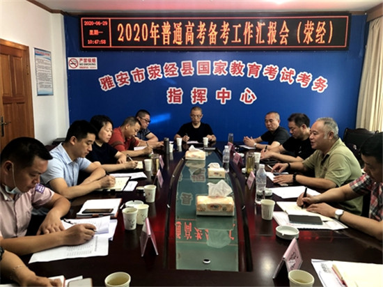 四川新闻网雅安6月29日讯(雷丽 文/图)2020年高中考在即,为确保高中考工作顺利进行,6月29日,雅安市招考委副主任、市招考办主任杨学武带领由市公安局、市保密局、市疾控中心等市招考委成员单位负责人组成的联合检查组,对荥经高中考备考工作进行全面检查。荥经县教育局局长李卫及县公安、保密、卫健、疾控中心相关负责人陪同检查。 检查组一行首先来到花滩中学、荥经中学,对考点的考场设置及考试防疫工作部署等情况进行详细了解,重点对荥经中学考点的考试指挥中心、英语听力播放系统进行检查,并就考点入口体温检测通道、临时观察室设置等提出指导建议。随后,检查组到县教育局教育考试中心对考试巡查系统指挥中心、试卷保密室进行全面检查。