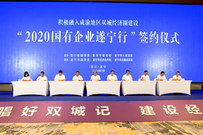 签约仪式上,四川省国资委副主任沈汝源、遂宁市副市长陈伐签署《战略合作框架协议》。在川央企及湖南、黑龙江、重庆等省市的30多家国企与遂宁市签约37个项目,协议投资总额790亿元。其中,产业项目18个,签约金额414亿元,涵盖新基建、新能源、锂电与新材料、文化旅游、生猪养殖等多个产业领域;包含交通、产业园基础设施建设在内的基础设施类项目19个,签约金额376亿元。此外,遂宁还与重庆潼南、铜梁等兄弟城市签定了5项成渝地区双城经济圈建设基础设施协同推进备忘录,总投资估算金额651亿元。  | | 签约现场 |