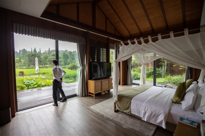 前来依田桃源观光的游人 依田桃源内的民宿 1600年前,晋人陶渊明写了自己的一个梦;1600年后,我们仍在寻觅“桃花源”。 寻觅桃花源,实际上是寻觅一种慢下来的生活。在那里,我们可以阡陌交通,鸡犬相闻;可以不知有汉,无论魏晋。没有案牍劳形,没有世事纷扰,时光如日影,缓慢、悠长。 如果有这么一个地方:鳞次栉比的稻田,弥望的水稻;田坎上,游人正在采摘新鲜的瓜菜:南瓜、辣椒、玉米,三三两两,喧喧嚷嚷;碎石铺就的乡间小路蜿蜒其间,点缀着造型别致的乡野建筑:或是民宿,或是大米主题的餐厅;蝉鸣中,七月的风拂过荷塘,阵阵清香,阵阵清凉——你愿不愿意来这里,过一个慢下来的周末? 依田,桃源,两个词组合,发出四个上扬的美妙音节。这里是温江依田村项目的展示体验中心,是成都最新的网红景点,是现代城市人的一个田园慢生活梦。 慢的生活 7月21日,星期二,小雨初霁。用温江农高园(生态旅游区)管委会规划建设部副部长冯松的话来说,“这是最适合游览依田桃源的天气”。 两水环抱,形成一个142亩的半岛;地还没干透,空气中氤氲着水汽,走过一道照壁,豁然开朗,依田桃源的风景展现在眼前。可以想见当年武陵人的那种惊喜:稻田、荷花、鸟鸣、虫唱,几分钟前还在闹市,如今已身在一个古朴幽静的空间。“芰荷迭映蔚,蒲稗相因依”,虽然面积不大,但水、田、花、鸟一应俱全,如同一个微缩的田园世界。 小刘和小唐是两位大学生,现在正值暑假,她们从小红书上看到了这处景区的推荐信息,于是慕名而来。来了准备怎么玩?两人异口同声:“拍照!” 正在稻田边拍照的小唐告诉记者,小红书上依田桃源民宿的照片引起了她俩的注意,特意带了单反,决定过来拍个尽兴。“第一次见到这么多、这么绿的水稻,还有玉米、南瓜和番茄。”小刘提到的玉米、南瓜和番茄,都是依田桃源和农科院合作开发的新型品种,依田桃源的水稻也打造了自己的品牌,这些农产品都可以在园区内的大米餐厅品尝到。 的确,对于爱发朋友圈的女孩子来说,这里是拍照的好地方:朴素淡雅、造型别致的建筑,点缀着白花的草坪,小溪边的秋千架…… 除了拍照,这里还有更多耍法。市民张女士带着不满周岁的孩子,想要体验一下景区里的亲子采摘活动。“现在的人对这些农业活动都不熟悉了,想带孩子体验一下。”田地里种满茄子、辣椒等蔬菜,其中不少都是游人亲手所栽。 耍累了,在这里的民宿住一晚,也是不错的选择。民宿就修在稻田旁,平层,落地式的窗户,躺在床上就可以饱览窗外的田园风景。 “慢”的生意 在项目设计、建设、运营方明信集团文旅公司总策划师赖成勇看来,“像成都人那样生活”,指的是一种张弛有度的状态,既能积极拼搏,又能闲庭信步。而依田桃源,正是为了营造这样一种生活状态。“依田桃源这个名字,来自集团董事长贺信。一方面,我们的基础是田地;另一方面,我们是以美食为核心的新型乡村综合体,所以取‘吃’这个词的英文Eating。通过众多创新的休闲场景,希望让人能沉浸其中,停一停,静一静。”他这样描述景区打造的初衷。 依田桃源背后,还有依田村这盘更大的棋。依田村是目前温江面积最大、投资最多的农商文旅体养融合项目之一,规划面积约2850亩,总投资约50亿元,按照规划,项目中将包含度假酒店、特色民宿、稻田温泉、休闲美食、田园游乐等众多业态。 这些业态背后,都有一个“慢”字 “对现代人来说,‘慢’是一种奢侈品,所以乡村旅游要‘更农村’。”赖成勇说。所谓“更农村”,指的是对原生环境的高品质打造。他用延续、再生、创造三个词形容景区的设计思路。其中的再生,指的是对古建筑的“修旧如新”,比如景区的接待大厅,就是一座有百年历史的川西古建。“修复旧建筑比新建更费时费钱,但唯有这样才能保留这股‘慢’味。” 漫步依田村,你能感受到赖成勇口中的这个“慢”字无处不在,甚至,景区规划了一个“发呆体验主题公园”。“未来,这里会有吊床、树屋等多种‘发呆工具’,为游客提供几十种‘发呆场景’。或躺在吊床上,或在树屋里度过一个悠闲的下午,反思下自己这一周的得与失。” 这里的“慢”不仅是“旧”与“发呆”,更是一种国际化的体验。2022年,依田村的“极乐汤”项目将建成并对外营业。极乐汤是来自日本的温泉连锁品牌,在国内其他城市都落户于市区,但在温江,极乐汤温泉度假村将首次以旅游目的地的形式做乡村温泉。 “慢”也成了景区的一本独门生意经。据赖成勇透露,依田桃源营业不久,虽然民宿客房单价在1000元以上,但预订仍然十分火爆。 好的收益 游人享受着慢下来的生活,景区也成了“网红”,但这一切的得来,并非一帆风顺。 依田村所在的温江北部区域,以苗木花卉种植闻名,但长期存在的苗木滞销问题也给农民带来了不少压力。2010年,温江苗木种植面积就已经突破20万亩,快速发展导致价格跌入低谷。2016、2018年,温江区尝试通过转型升级破局,但2020年突如其来的疫情导致花卉需求低迷,苗木产业再一次面临滞销困境。 如何突破产业单一的现状?如何实现各司其职互利共赢的理想商业模式?“我们从招商引资入手,培育符合北林区域需要的特色企业。”冯松告诉记者,依田桃源项目就是园区引进的一个案例。 招商引资的目的是实现乡村振兴,落实片区的综合开发。“乡村振兴的本质,是把产业