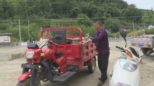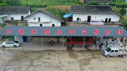 为了争取卖个好价钱,三道水村2组种植大户胡在才也乘着村里交易市场这股“政策”之风,开着自家的三轮车载着刚采摘的脆红李向村活动室旁的三道水脆红李交易市场奔去。