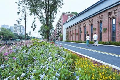 成都新近打造的爱情巷一亮相就成为市民争相打卡的好去处。从太升桥沿星辉中路滨河段往北门大桥下,小巷内用红砖外墙打造装饰沿河民房。图为9月14日,市民在爱情巷散步休闲。 本报记者华小峰摄