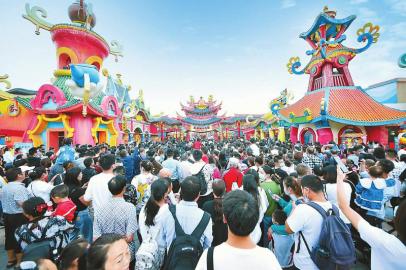 2020年9月26日,“世界山水城,欢乐目的地”重庆融创文旅城举行盛大的开城活动。重庆融创文旅城是重庆目前对外开放规模最大的文化旅游项目之一。 据悉,重庆融创文旅城位于重庆市沙坪坝区西部片区,成渝走廊的节点、科学城的核心。总占地约6700亩,其中文旅业态总占地约1500亩,总建筑面积约70万平方米。集成主题乐园、文化演艺、现代商业、高端酒店、体育竞技、夜游市场等多种新型消费形态,着力打造西南地区规模大、业态多、影响广的文旅融合新地标和世界级一站式潮玩目的地。□胡严 (图片由融创四川公司提供)