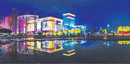 温江区发展夜间消费新名片——新光天地商业综合体夜景。