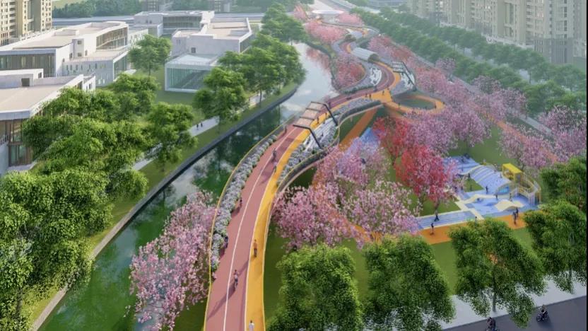 它的总长度有8.6公里,定位为成都高新区社区级绿道。这一环线不仅是一道具有国际范的绿道景观线,而且串联起该片区极为丰富的公共服务设施和商业项目,便捷辖区居民无障碍通行、激发社区发展活力,将打造成为慢行交通新典范和具有高新特色的慢生活城市步道。