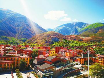 近年来,巴塘县投资2.5亿元实施城市改扩建项目,完成县城道路改扩建、综合管廊建设及五线下地等旧城改造项目,同时投资1.5亿元用于城市风貌提升,完成10条城区街道美化、亮化、绿化。图为10月19日,巴塘县城一角。 杨丹 摄