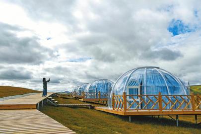 一个纯牧业乡的旅游致富梦 宗塔草原上,7座白色的球形帐篷散落,所有房屋、帐篷,包括草原间的木质步行廊道都是用钢结构架起来的。“这个栈道距离地面有20至50厘米,为的是尽量不影响草的生长。”奇美伦珠领着记者边走边看。 宗塔乡距离炉霍县城50公里左右,海拔3700米左右,由于海拔高、地理位置偏远,没有什么产业优势。“全乡4个贫困村,189户720余人,大多数都以放牧为生,没什么其他收入。4年前,我们人均年收入还不足2000元。”奇美伦珠说。 如何增收?“最美的风景往往在偏远地,我们宗塔乡旅游优势就很明显了。” 奇美伦珠介绍,宗塔草原有“两奇”:一是草原核心区域呈盆地形状,群山包围下是40多平方公里的肥美草场,早上一片浮云将包括民居在内的40多平方公里草场遮盖,宛如仙境。二是每年6月开始,宗塔草原开始次第盛开不同颜色的小花,因此有“宗塔七彩草原”之称。 实际上,早在2017年,宗塔乡牧民就开始自发搞帐篷旅游,在牧民居住核心区建起了旅游度假村,并实现了200人/天的接待能力。“但基本上管理粗放,同时卫生条件差、接待水平比较低端,游客留不下来。”奇美伦珠说。