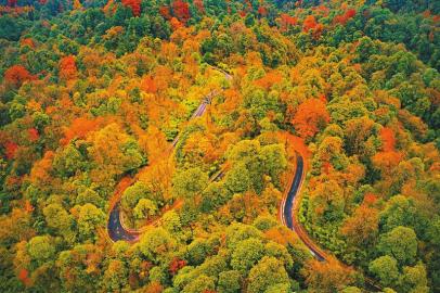 11月6日,雅安荥经县龙苍沟国家森林公园内彩林层叠、秋意浓浓,将山野装扮得如诗如画。 黄刚摄(视觉四川)