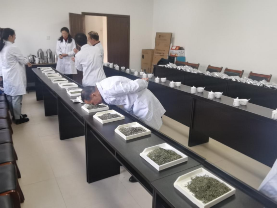 据了解,评茶分为:观形、察色、闻香、尝味,共计四步。其中,又分为干茶、湿茶、茶汤三种。冲泡严格统一样品克数,统一冲泡时间,保障公平公正,6名茶叶专家在现场对报名参加评审的茶样进行打分。