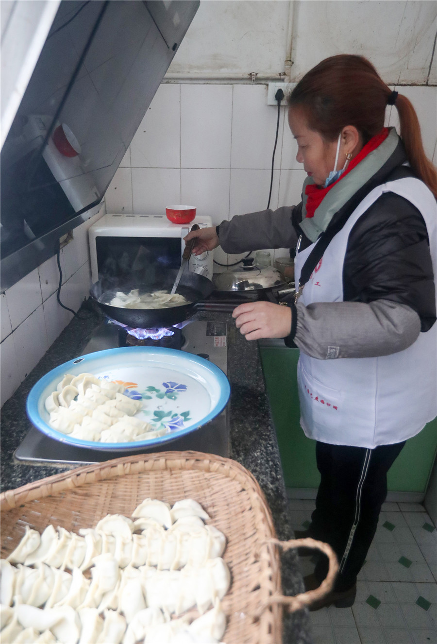 | 2月4日, 四川省华蓥市的义工在给“中国好人”称号获得者许前政一家人, 烹煮过小年食用的水饺。 |