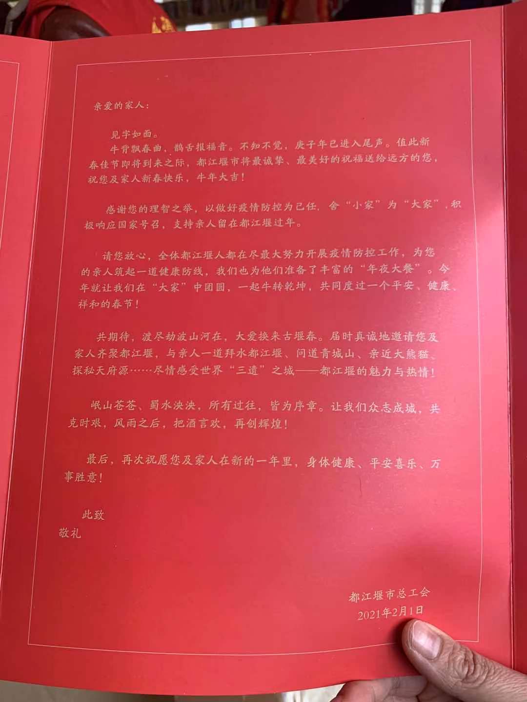 都江堰市总工会为就地过年省外职工的家人写的一封信