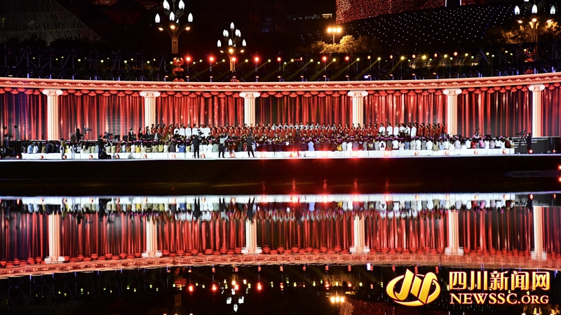 今年8月,成都将迎来第31届世界大学生夏季运动会,这是中国西部承办的最大规模世界性综合运动会,也是成都建设世界赛事名城进程中标志性事件。晚会以“牛年迎大运,幸福成都年”为主题,运用虚拟与现实混合置景、夜景航拍等技术手段,以公园城市大美景观作为背景,是一场舞台规模大、科技含量高、艺术形式最为丰富的大型沉浸式音乐会。临湖搭建的巨型LED屏震撼夺目,与灯光璀璨的天府国际金融中心双子塔交相辉映,形成浑然天成的交互场景。