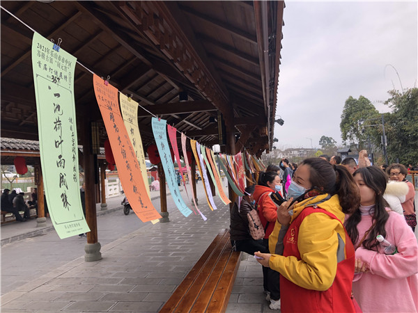 四川新闻网消息(蒲晓君 文/图)2月26日,农历正月十五,正值中国传统节日元宵佳节。苏稽古镇举行了“闹元宵”暨首届猜灯谜活动。当天,周边游客和村民们早早来到活动现场,猜灯谜、看表演、踏青赏花,感受节日的欢乐与喜庆。