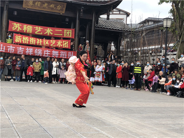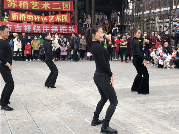当天下午两点,伴随着欢快的旋律,元宵活动在栖风广场、老戏台正式拉开序幕。村民们精心编排的水兵舞、藏族舞、快板、竹竿舞等文艺节目一一登场。演员们优美动感的舞姿赢得掌声阵阵;一曲《回娘家》的诙谐演绎,更是把大家乐得前俯后仰;而旁边的竹竿舞表演发挥出互动优势,在动感热烈的竹竿撞击声中,不少观众也参与其中。