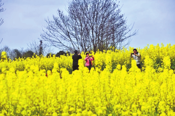 温馨提示,在地铁10号线黄水站C口出就可看到成片的油菜花,赏花踏青时,请爱护庄稼。