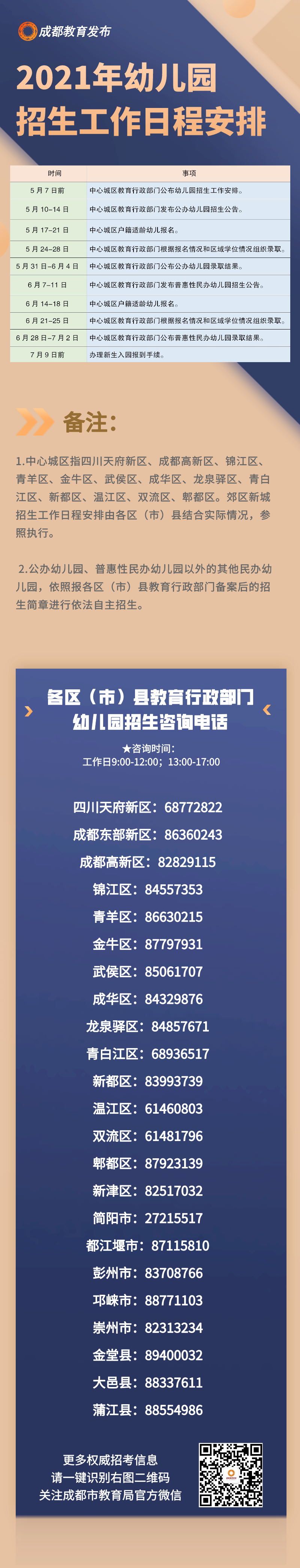 招生工作日程安排时间表和各区(市)县教育行政部门招生咨询电话