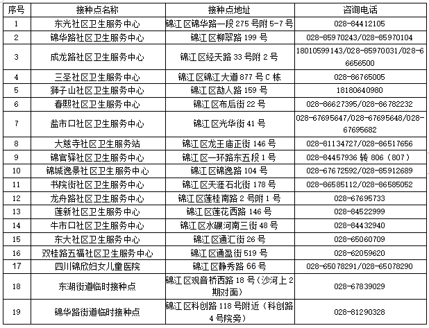 目前,成都市大规模疫苗接种正在进行。近日,记者从成都市锦江区委宣传部获悉,锦江区各个街道也陆续开放了辖区新冠疫苗接种点(具体接种地点附后),请有接种意愿的市民携带本人身份证,根据街道的组织安排前往接种点接种。