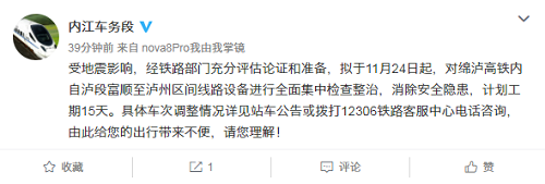 | 内江车务段官方微博消息 |
